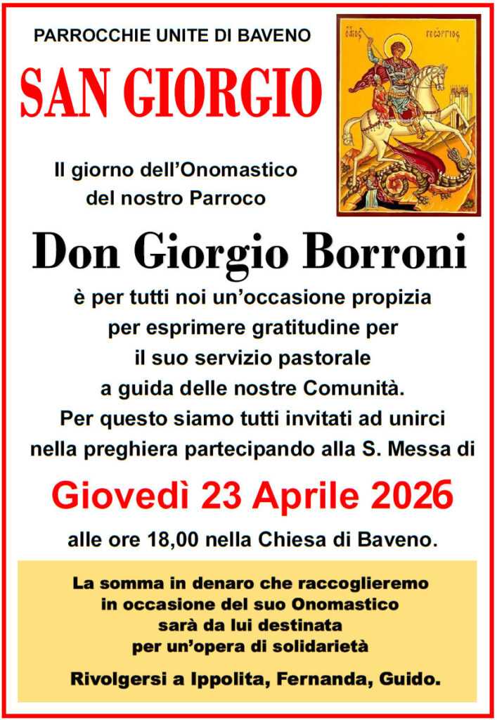 Giovedì 23 Aprile 2026 alle ore 18,00 nella Chiesa di Baveno.